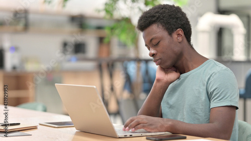 Tired Young African Man with Laptop having Neck Pain
