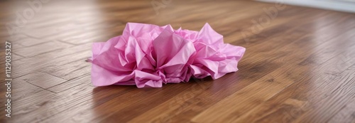 Tissue paper placed neatly on a wooden floor with an air pocket, floor, material, air pocket