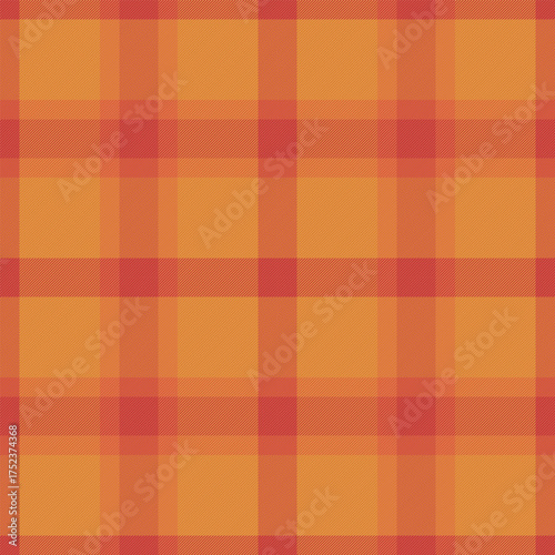 Tissue tartan fabric textile, greeting plaid background check. Sofa vector pattern texture seamless in orange and red colors.