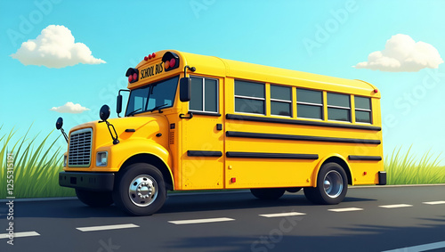 Title: A Bright Yellow School Bus with Shiny Chrome Wheels