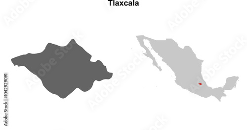 Tlaxcala state blank outline map set