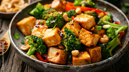 Tofu Stir Fry With Broccoli And Cashews.