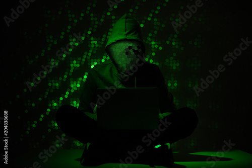 green, person, clothing, adult, people, male, man, technology, silhouette, electronic, mobility, wireless, digital, laptop, network, cyberspace, information, criminal, crime, clothes, alone, contraption, appliance, programming, use, programmer, privacy, piracy, software, hacker, hack, hacking, hoodie, exploit, scam, phishing, partial view