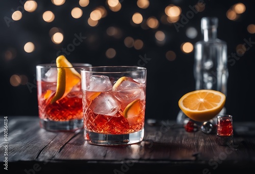 tonic background gin alcoholic wooden negroni black cocktail two celebration orange drink ice beautiful food row glasses fruit bar barkeeper citrous alcohol whiskey table closeup people green spritz