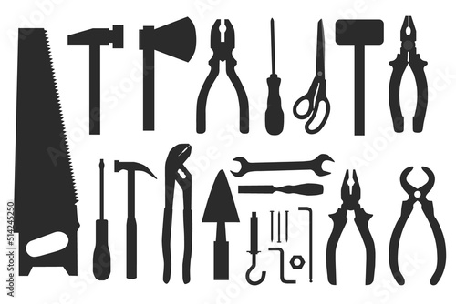 tool, builder, work, object, knife, signs, screwdriver, repair, equipment, spanner, hammer, hardware, fix, plumber, machine-building, blade, mechanic, engineer, engineering, wrench, symbol, silhouette, set, collection, hand, icon, tool, carpenter