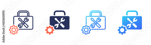 toolbox, tool, wrench, screwdriver, repair, service, setting, equipment, maintenance, technician, gear, support, fix, gradient, icon, outline, glyphs, banner, vector