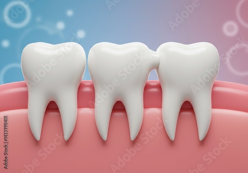 Tooth Gum Anatomy, 3D Rendered Closeup of Teeth in Gums, White Color, Clear View