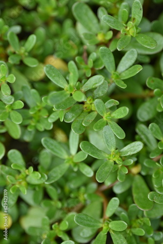 top photo of portulaca leaves as background, green portulaca leaves as background
