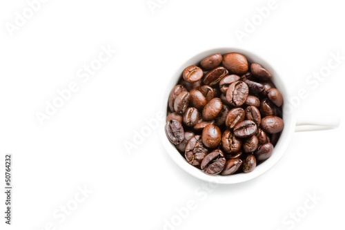 top view of a cup of coffee beans with space for text