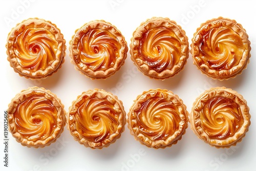 Top View of Caramel Swirl Mini Tarts Collection on White Background.