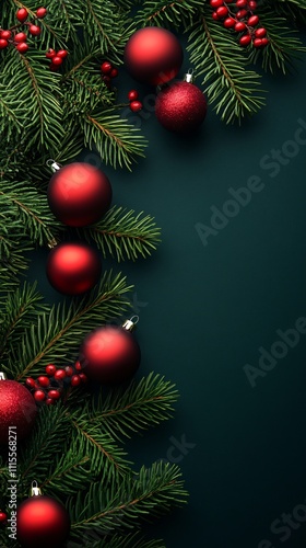 christmas, frame, bauble, tree branch, top, table, pine, copy, space, background, tree, ball, red, holiday, decoration, fir, decor, celebration, christmas, winter, card, season, greeting, festive, ornament, new year, invitation, december, banner, design, year, new, gift, template, composition, seasonal, border, decorative, celebrate, elegant, fashion, flier, event, ball, traditional