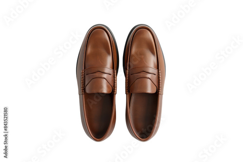 Top view of elegant brown leather loafers on transparent background. Perfect for fashion, style, and footwear concepts in stock photos.