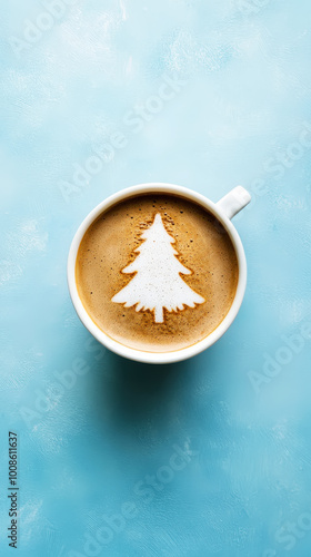cappuccino, hot drink, cup, latte, christmas, tree, latte art, art, aroma, drink, barista, fresh, brown, winter, christmas, cafes, blue, background, hot, beverage, christmas tree, breakfast, morning, milk, foam, caffeine, texture, cream, drawing, epicure, design, hot drink, aromatic, delicious, espresso, holiday, table, creative, celebration, style, new, celebrate, copy space, decoration, topview
