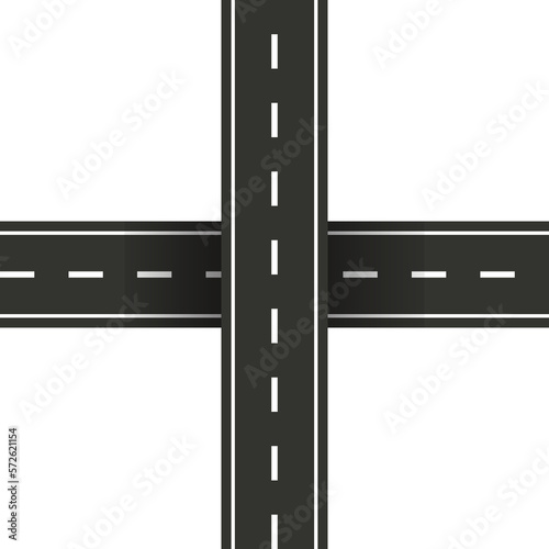 Top view Road element. Design Element for city map. Street with footpath and crossroad. Road seamless constructor. Highway asphalt path traffic street. Street junction and road object