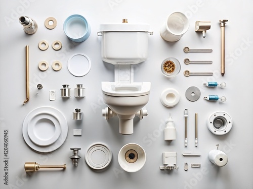 Top View Toilet Bowl Plumbing Parts: Repair & Installation Components