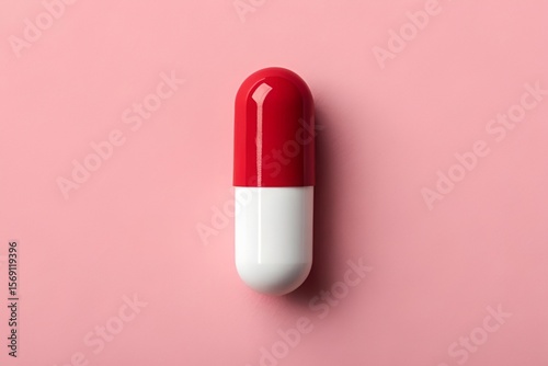 capsule, red, white, pill, medicine, tablet, drug, pharmaceutical, health care, closeup, background, pink, pastel, smooth, rounded, clean, center, isolated, pharmacy, medication, health, remedy, treatment, drugged, vitamin, supplement, macro, minimal, bright, design, object, clinical, modern, sharpened, contrast