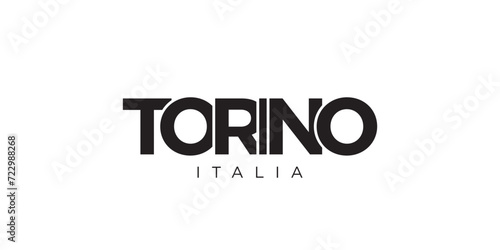 Torino in the Italia emblem. The design features a geometric style, vector illustration with bold typography in a modern font. The graphic slogan lettering.