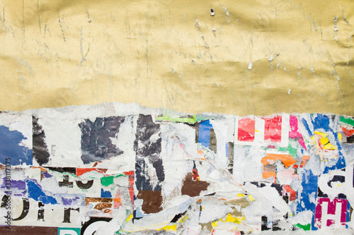 gold, torn, poster, signs, paper, billboard, abstract, art, background, bright, colourful, crease, creased, crumpled, design, dirty, garbage, glued, grunge, industrial, lacerated, layer, material, motley, old, peeling, ragged, retro, ripped, rough, scratched, shabby, street, surface, tattered, texture, urban, vintage, wall, weathered, worn, wrinkled, glossy