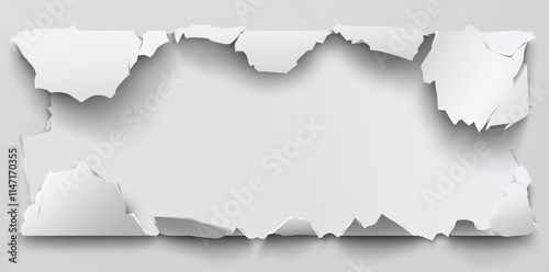 paper, torn, ripped, hole, frame, border, edge, texture, background, design, space, copy, template, abstract, grunge, damaged, distressed, fractured, break, surface, material, white, grey, blank, empty, illustration, graphic, element, overlay, art, style, concept, image