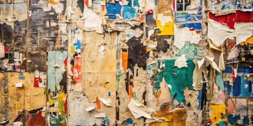 Torn street poster background with abstract retro paper collage , urban, grunge, vintage, texture, torn, weathered, poster, abstract