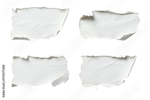 Torn white paper pieces isolated on transparent background. Set of torn paper tear isolated on white background.