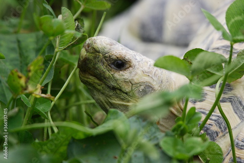 turtle, tortoise, reptile, eat, lunch, leaf, walk, sun, sunbath, clover, shell, grass, nature, slow, wildlife, green, wild, pet, animal, zoo, cute, pet, animal, macro, eye, closeup, reptile, head, closeup