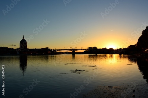dusk, toulouse, mirror image, sunset, bridge, garonne, quay, river, night