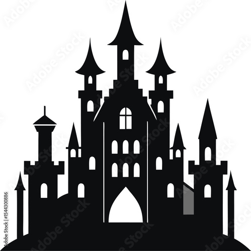castle, vector, cartoon, house, illustration, building, tower, architecture, mediaeval, fantasy, town, silhouette, city, home, old, palace, fairy, fairy tale, art, fortress, princess, kingdom, wall, village, tale