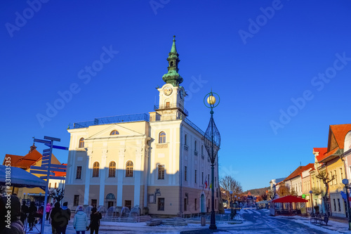 Town hall and the main square in the town of Kezmarok,