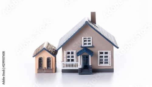 miniature, isolated, white background, wood texture, small house