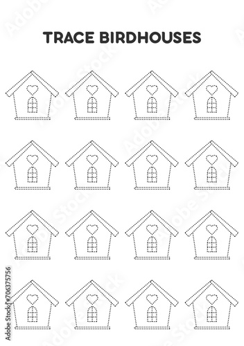 Trace birdhouses. Worksheets for kids. Preschool education.