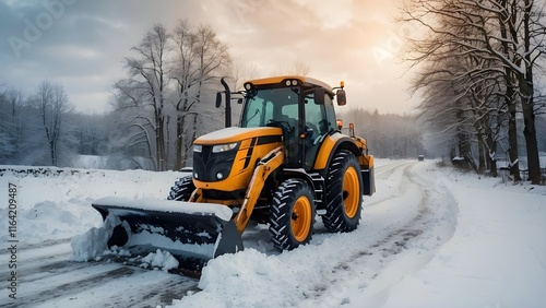 snow, winter, tractor, road, car, cold, machine, vehicle, snowplough, driving, truck, equipment, plough, work, weather, ice, removal, white, mountain, bulldozer, cleaning, transportation, transport, snowcat, construction