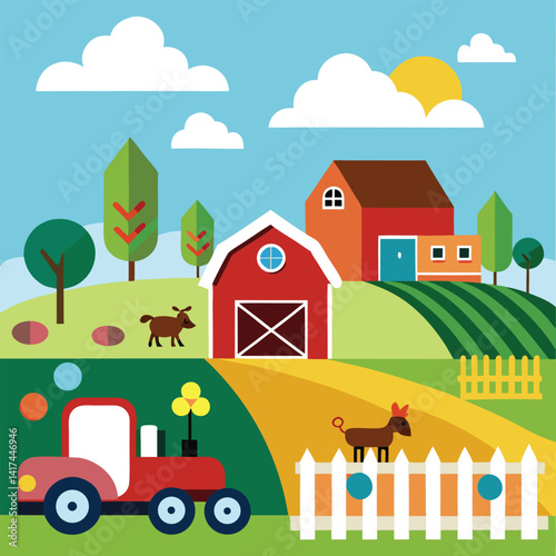 tractor, animal, farm, barn, scene, grass, field, crop, country, green, agriculture, plant, earth, nature, rural, quiet, flora, eco, farmhouse, farm animal, calm, day, sun, sky, hay, pasture, ranch, rustic, life, peaceful, planting, tree, garden