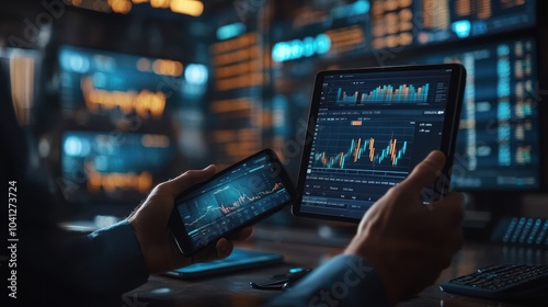 trading, datum, illuminated, device, city, night, light, intricate, financial, trend, trader, vibrant, finance, market, technology, commerce, urban, modern, digital, economy, futuristic, glow, chart, smartphone, insight, visualisation, wealth, growth, innovation, nightscape, analysis, exchange, professional, brightness, bustling