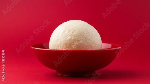 Traditional African Fufu ball served in red bowl on red background