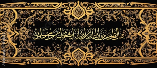 Traditional Arabic writing, black and gold gradient, ornamental borders