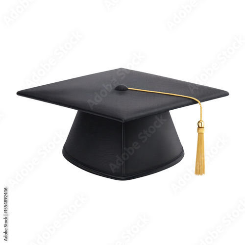 Traditional Black Graduation Cap with Gold Tassel Isolated on White Background for Educational Celebrations and Achievements Transparent background or png
