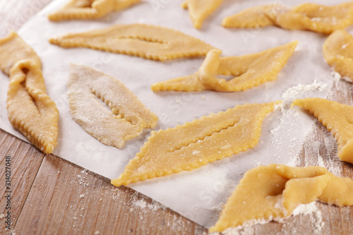 donut, donut, cake, raw, dough, cook, cooking, making, preparation, receipe, food, flour, ingredient, rolling pin, homemade, carnival, tradition, seasonal, mardi gras, french, bake, baked goods, baking, angel wings, wood, background