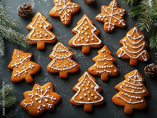 Traditional Gingerbread Cookie Tree: Sweet Homemade Decorated Biscuits with Icing