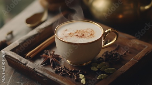 Traditional Indian hot drink with milk and spices - Masala tea. Organic ayurvedic chai, herbal drink.