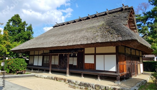 house, architecture, japan, traditional, thatched roof, rural, garden, wood, structure, landscape, building, grass, culture, heritage, design, historic, scenery, nature, travel, tour tourism, interior, quiet, serene, peaceful, environment, rural area, seasonal, foliage, calmness, sky, cloud, sunlight, craftsmanship, community, green, maintenance, authenticity, bamboo, style, residence