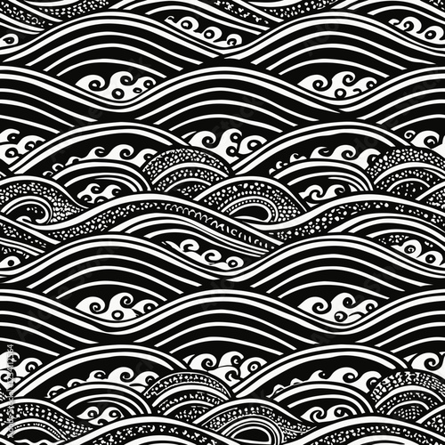 ocean, water, sea, wave, traditional, blue, white, design, decorative, surf, swirling, nature, fluid, energy, motion, art, graphic, marin, japanese style, illustration, nautical, coastal, wallpaper, print, abstract, storm, marine life, harmony, fluidity, wind, japanese culture