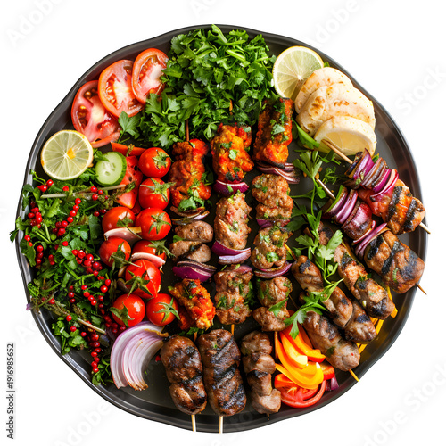 traditional kebab platter festive isolated on pure white background