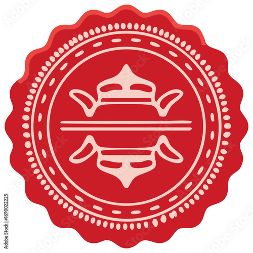 Traditional red Asian seal emblem with an ornate symmetrical design