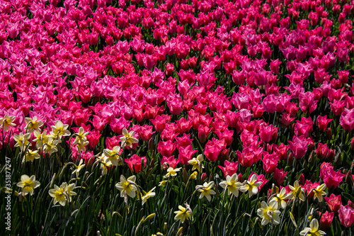 Traditional Tulip Festival at Emirgan Park in Sarıyer district of Istanbul. Colorful tulips of Emirgan Park.