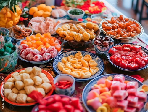 Traditional Vietnamese Tet Sweets and Preserved Fruits for Lunar New Year