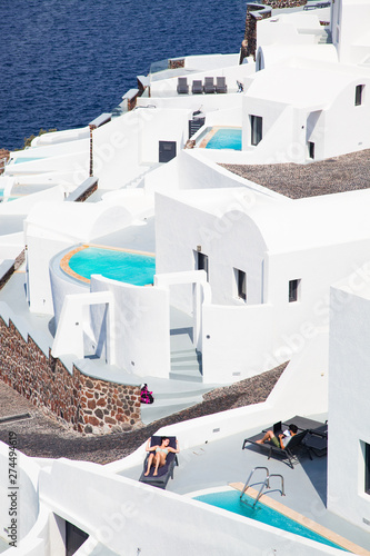 traditional white architecture over the Caldera, Aegean sea. Scenic travel background, Santorini
