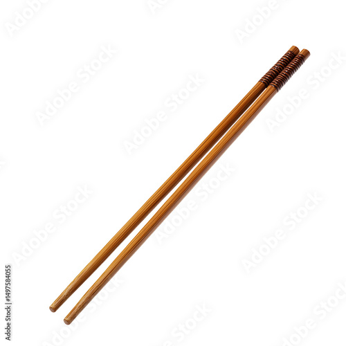 Traditional Wooden Chopsticks with Brown Bands Isolated on Transparent Background