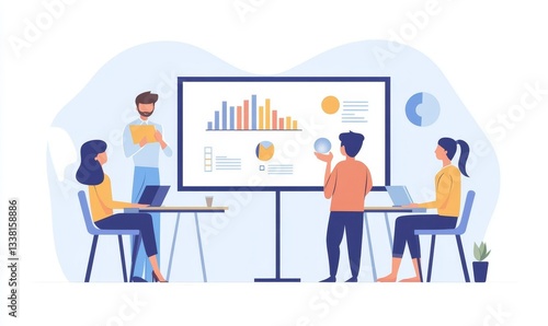 Training, education or business people in presentation for sales report or financial analysis in office. Teaching, leadership or manager planning in a