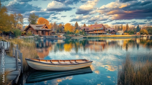 autumn, foliage, tranquil, fishing, spot, twilight, soft, light, charming, rustic, cabin, water, landscape, nature, scenery, peaceful, serene, lake, boat, dock, tree, cloud, evening, beautiful, colours, calm, relaxation, retreat, vacation, warmth, cosy, scenic, rural, atmosphere, environment, view, image, honed, countryside, harmony, beauty, sky, sunshine, daylight, style